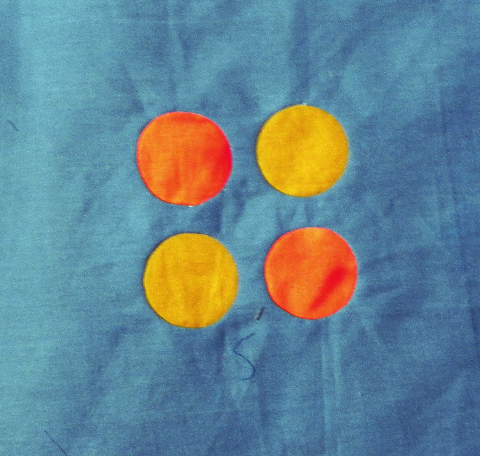 Some gulmohar leaves, a flower or two of Vinca rosea add to the design element. Just press them gently onto the damp fabric before putting them out in the sun.