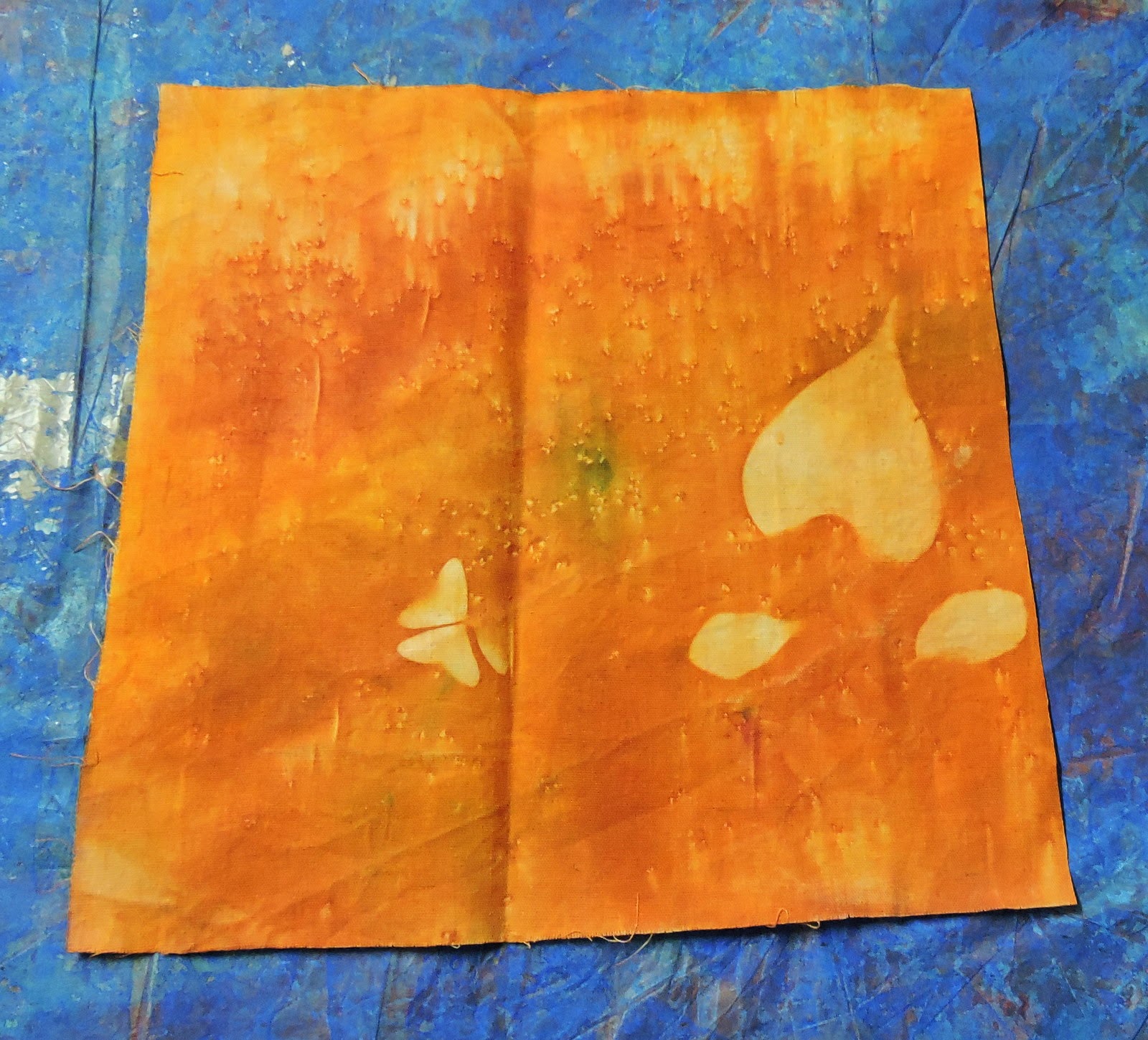 The excess reddish/orange paint I mopped up with a piece of fabric.And that too looks lovely when dried.