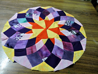 The layout for the blocks were also designed by Madhu. I chose this as it was easy to break into panels and do it qayg.Details of the quilting. I wanted the blocks to shine and chose to quilt densely to make them stand out.