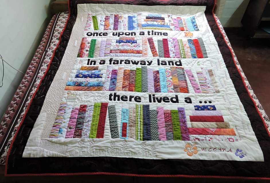 And this was the fourth for the family.Meghna wanted a bookshelf quilt and I loved writing the book names as also the names of a lot of Harry Potter characters as she was a huge fan of the book!