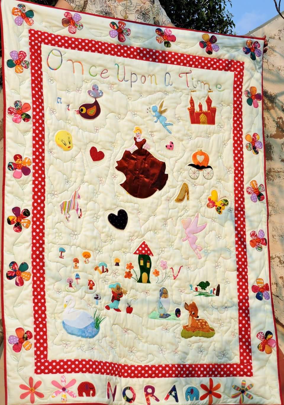 It seemed like everyone wanted a springtime quilt after a look at it. Thankfully I could convince the grandmother to modify the theme. This was Nora's once upon a time quilt!
